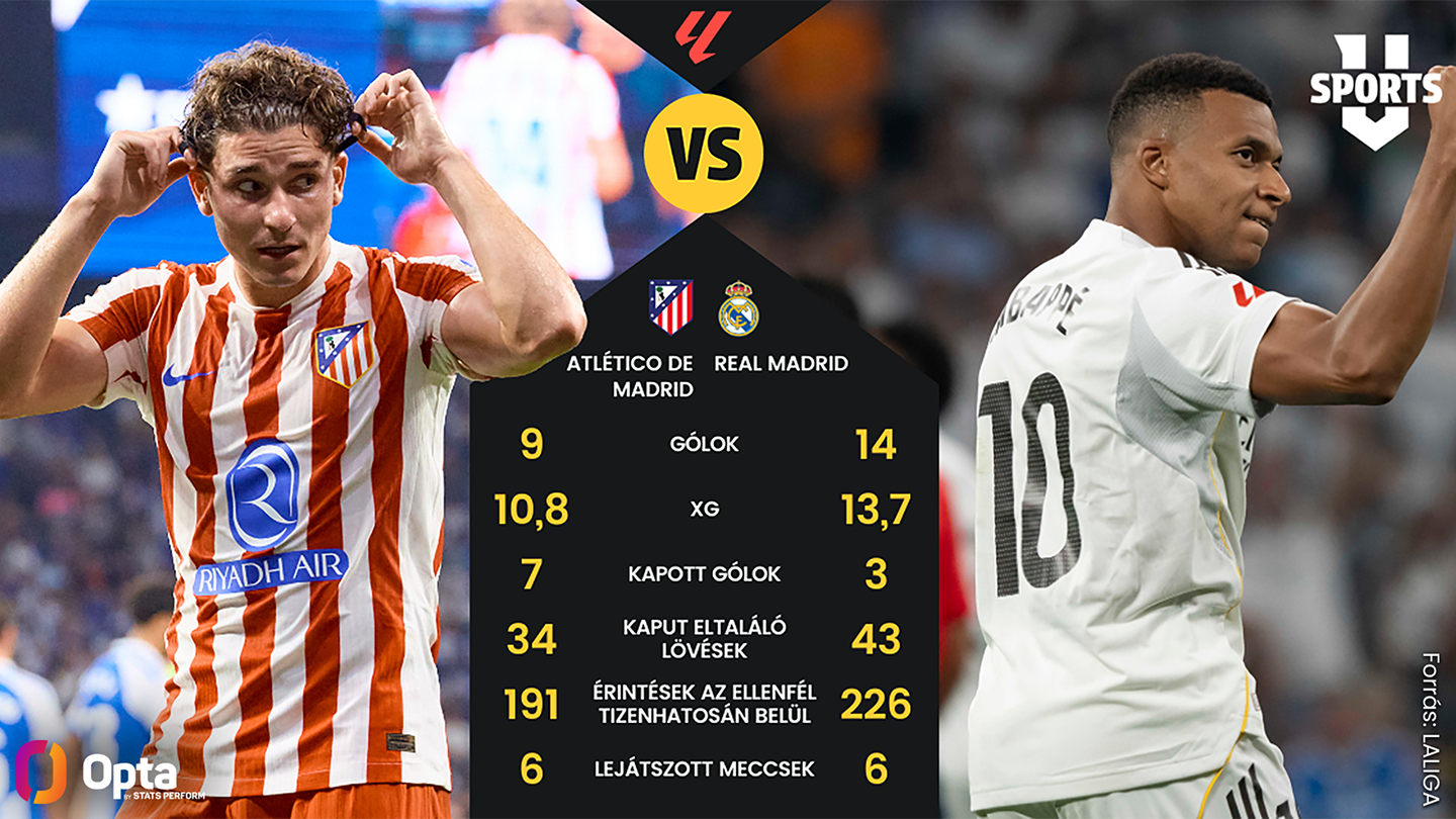 Vajon meg tudják majd állítani a Matracosok támadójátékának alfáját és ómegáját, Julian Álvarezt? A világbajnok argentin csatár Diego Simeone legénységének legjobbja, legutóbb pedig győzelmet jelentő mesterhármast szerzett. Nagy szükség is volt a tripla eredményezte három pontra, miután az Atleti az első öt fordulóban mindössze hat egységet gyűjtött, amivel a középmezőny második felébe csúszott. A madridi derbin tovább folytathatják a kapaszkodást – az elmúlt évek eredményei őket igazolják!