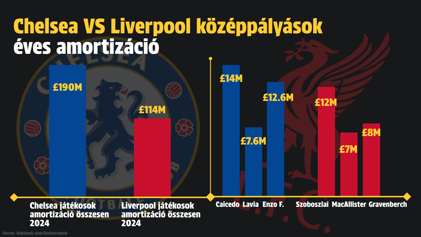 Nézzük, a Chelsea és a Liverpool kezdő középpályásainak éves amortizációs költségeit: