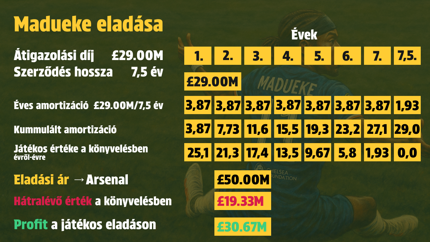 Ez azt jelenti, hogy a Chelsea irreálisan hosszú szerződésekkel próbálja csökkenteni az éves amortizációs terhet, miközben ezzel egy másik kockázatot vállal: ha egy játékost idő előtt kell eladni, alacsonyabb lesz a valós profit.